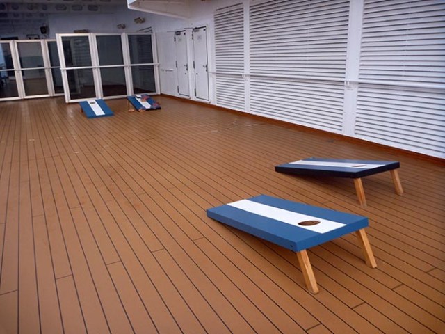 Bridge, mahjong, poker, and pickleball games were all on the schedule. Also sometimes other cruise games like cornhole, shuffleboard, and a series called traditional games that started with an egg walk and had other games to follow with daily and overall prizes. The shuffleboard and cornhole games were out on an upper deck available for anyone to play whenever they weren’t in use for an official competition.