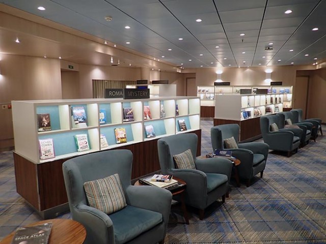 A fairly new feature on Holland America’s ships is a new library that has quite a variety of books organized into different sections like romance, sci-fi, mystery, young adult, and non-fiction, among other categories, There’s even a book exchange where people can leave a book they brought and finished and take one that someone else left there. The actual library books of course have to be returned before disembarking the ship.