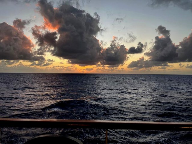Holland America ships have art classes. I had not paid any attention to them on previous cruises, but Linda likes that sort of thing. They offered watercolors, doodling, origami, adult coloring, dam dots challenge, and calligraphy. Watercolors were by far the most popular. We tried everything except calligraphy. She wasn’t interested in that one and I have a hard time writing legibly with a normal pen. Sometimes I can’t even read my own writing. The art teacher was Nora from Norway. She was entertaining as well as talented and made the art classes fun. I was always better at crafts than at art. For the most part Linda’s pictures were better than mine, but I made some passable artwork and there were even a couple times in the watercolor classes where my picture turned out better than hers. The instructor’s samples tended to outshine pretty much everyone else most of the time though. We painted what could be either sunrises or sunsets in the first watercolor class. Cruise ships are a good place to watch real sunrises and sunsets as they are often quite pretty over the water.