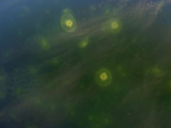 We stopped after we had four fish in the boat. That would be enough to feed everyone on the yacht. We had no need for more. Batman suggested a trip to the Neets Bay Fish Hatchery. Bears love the easy fishing in the salmon stream. Another boat from Yes Bay Lodge had just docked before we got there, so we threw them our lines. The water around the dock glowed with moon jellyfish undulating in the current like a luminous army of invading aliens. We got out of the boat and headed toward a trail. Bonus, a restroom! Had to stop there.