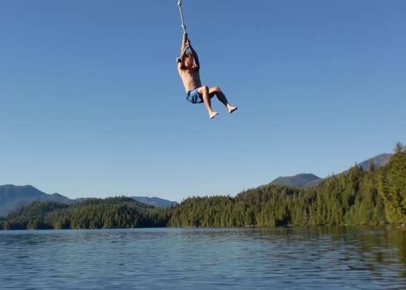 Back at Safari Quest, the staff hung a rope swing from the boom normally used to raise and lower kayaks from storage on the top deck to the water. Kevin tested it out fully clothed. Several people (all wearing swimsuits) followed soon after. It looked like fun, but they did make a mad paddle from the splashdown to the boat. With my intense aversion to immersing myself in cold water, I had to settle with watching others jump while thinking it would be fun in warm water.