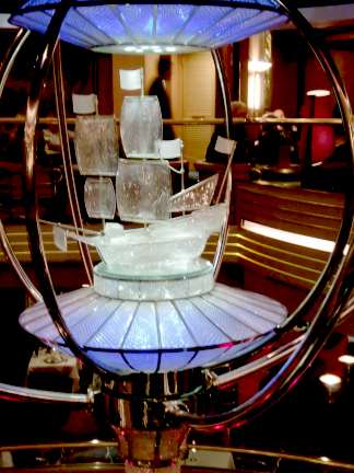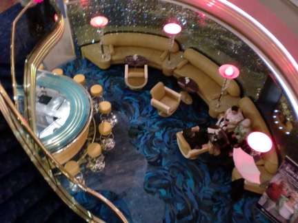 near the theater, and even wandered through the disco area. The Westerdam has a beautiful atrium. I really liked the boat light hanging above it, though I never could get a really good picture of it. In the gym, I signed up for a lecture the next morning on how to get a flat stomach, and entered a raffle for free spa services.
