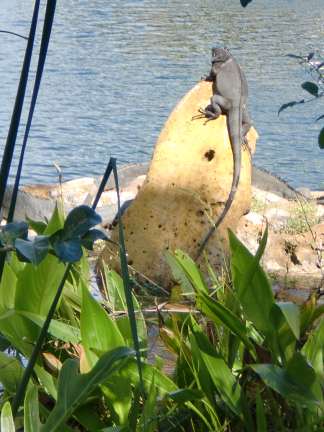 John would like that. They had a very nice restaurant there where he treated us to lunch. We ate out on the covered patio and watched birds swimming around in the pond. Now and then a bird came begging for food. An iguana sunned itself on a rock near the water. On the way out we met jaws.