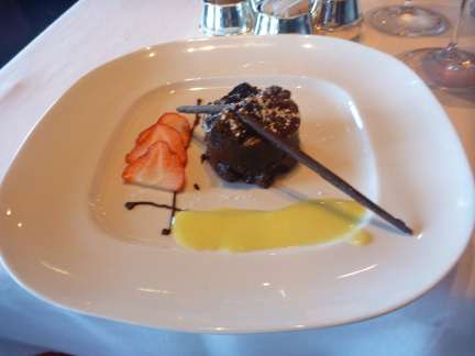On Holland America cruise line, the word pinnacle takes on a whole different meaning with the Pinnacle Grill. I think of it as the top of the spire of abundant and delicious dining choices. I’ll call room service the foundation of the spire. Choices are limited, but it is available 24 hours a day, and delivered at no charge. (Although it is always a good idea to tip.) We found the breakfast service especially convenient. You just leave the provided form on the cabin door before bed and have breakfast delivered at your specified time. That came in quite useful on shore excursion days where we really didn’t want to take the time to go to breakfast.