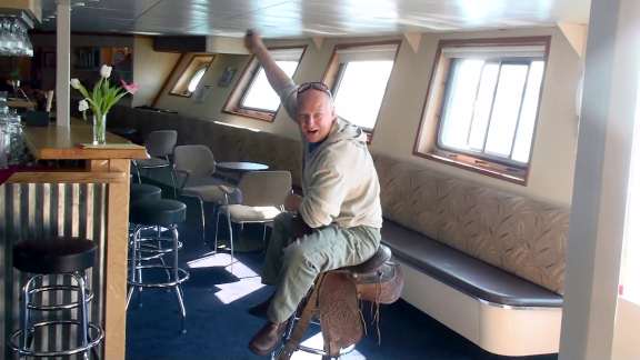 group of media people bound for Alaska to test the new InnerSea Discoveries itinerary. As we toured through the ship, Captain Dan Blanchard enthusiastically told us of his renovation plans. When we got to the bar area he mentioned a desire to decorate it in early forest service lodge mode. Then he said if anyone had any old outdoorsy items they would like to donate he’d be happy to accept. No doubt he meant things like antlers or old fishing lures. But my mind drifted to that dusty old saddle sitting up there in my hay loft.