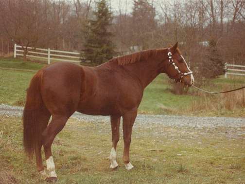 I got married, moved to the country, and bought a stallion named Gems Midnight Oil. In spite of his chestnut color, he had always been called Midnight, the time of day he was born. I got him as an unbroke 2-year-old. He was so gentle we had a cat that used to jump from the stall wall onto his back and ride him around before any people ever rode him. Cats do some strange things.
