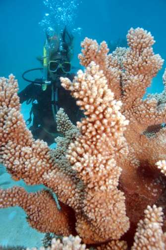 Diving on the Great Barrier Reef sure beats the normal first dive in a swimming pool! We got to the stop where John and I had our dive lesson scheduled and found the water full of tiny jellyfish. Not the deadly sort, but they did sting. Most people opted out of snorkeling at that stop.