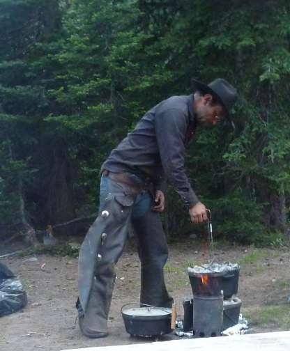 Aaron has Dutch oven cooking down to a science of how many coals for the desired heat