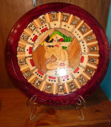 Mayan calendars in a variety of sizes lined a large section of wall at the store.  We would find none at Tulum, Angel explained, because they made them of wood so the Spaniards had burned the ones originally there.  The circular Mayan calendar has 13 months, as they used lunar months following the cycles of the moon.  360 days of the year are covered around the outside, one for each degree of a circle.  The middle depicts a person carrying a heavy burden, signifying the remaining 5 days.  Each successive year starts at the next equinox, ¼ of the distance farther around the circle than the previous one, accounting for the extra time we now put into leap year.