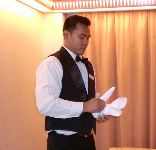 Every night cruise ship passengers around the world return to their cabins to find a towel animal sitting on their bed.  Stateroom Stewards fold these animals with ease, while passengers puzzle over how it’s done.