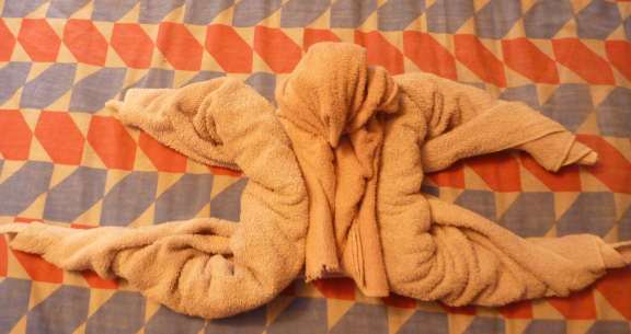 I was starting to wonder if the hanging monkey would be included until I got to the end of the blog. I know they didn’t do it on Carnival but it’s still one of the coolest towel animals. They are still hard to fold. I might be able to make a towel snake.