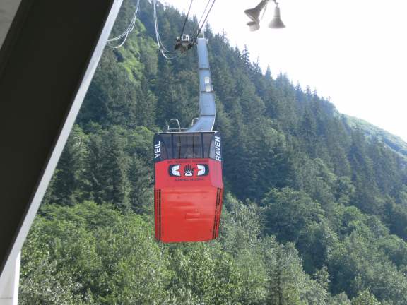 The bus from our scenic river raft tour dropped us off at the base of the Mount Roberts Tramway in Juneau, Alaska. Glad we had purchased our tickets on the ship, we bypassed the ticket line and went straight to the tram line. Figuring in time spent in line to go back down, the return trip itself (which takes 6 minutes from the 2000 foot high top back down to the lower tram station at 27 feet above sea level ) and catching the shuttle back to the not-quite-in-town pier where the bigger ships like Norwegian Sun docked, we had about 15 minutes to spend at the top.