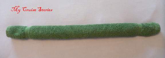 Roll the hand towel lengthwise.  The whole towel in one roll.  Yup, it’s that easy.
