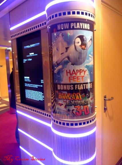 Short for a movie, or long for a ride, this theater really puts people into the action of these family-friendly shows.  Episodes playing during our cruise included Ice Age, Happy Feet, Polar Express, Planet Earth Shallow Seas, Sponge Bob and Speed Racer.