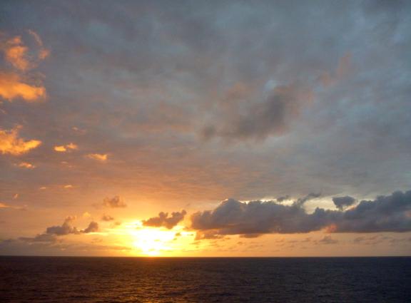The Carnival Breeze and all passengers aboard got very lucky on the ship’s maiden transatlantic voyage.  Every day during our ocean crossing we had sunny skies, warm weather, and smooth sailing.  What more could anyone ask for?  How about some glorious sunrises and a few nice sunsets too?