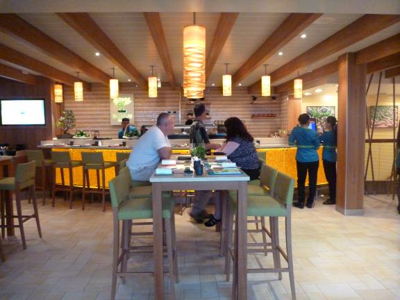 The open and inviting look of most of the ship carries though to the full service sushi bar. Sushi here comes with a bit of extra cost.