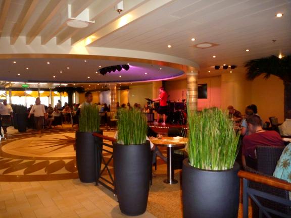 The Ocean Plaza area on deck 5 has a casual inviting look. People enjoy hanging out there for things like trivia contests, dance lessons, and music from bands.