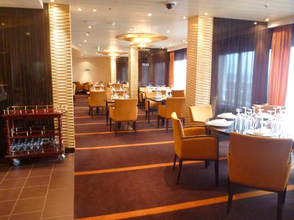 The main dining rooms manage to maintain an elegant, yet relaxed look without the ornate scrollwork normally adorning the walls in formal cruise ship restaurants.