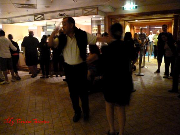 passengers dancing joyfully at the chocoholic buffet