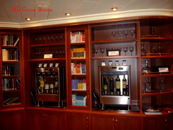 While most cruise ships have libraries, and they all have bars, the Breeze has something quite unique in their Library Bar.  The library stays open much longer on the Breeze than on ships with no bar in their library, so passengers who just want the books can appreciate the bar for making them more available.  It has wine-dispensing machines and a small non-crowded bar with bartender.