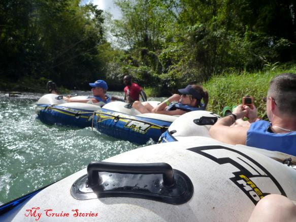 River tubing shore excursion at Good Hope Estate from Falmouth, Jamaica. Through the rapids the tubes go a bit faster.