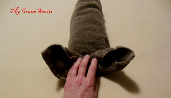 leave enough towel for ears sticking out on each side and hold the any extra in the middle when starting to roll