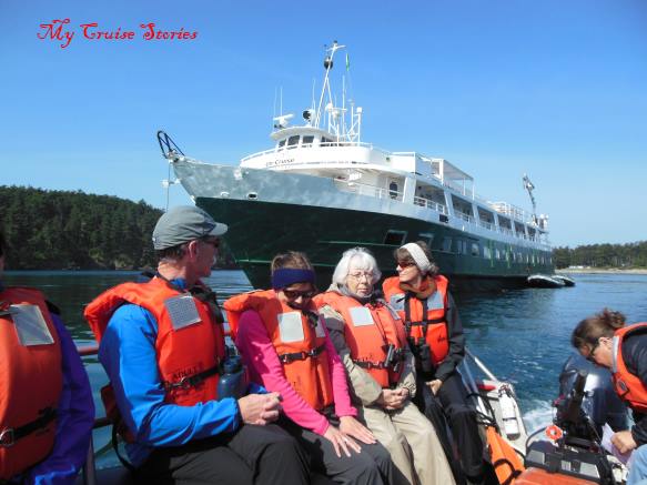 Passengers on a skiff from the Wilderness Adventurer