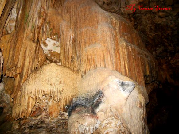 over the eons water flowing through limestone makes interesting formations in cave walls