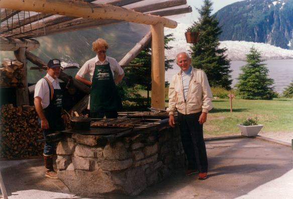Dr. Len Kreisler and workers at Taku lodge, Alaska