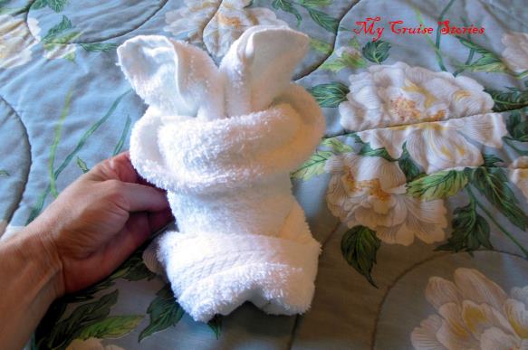 fold the edge over the rubber band and shape the ears and the nose
