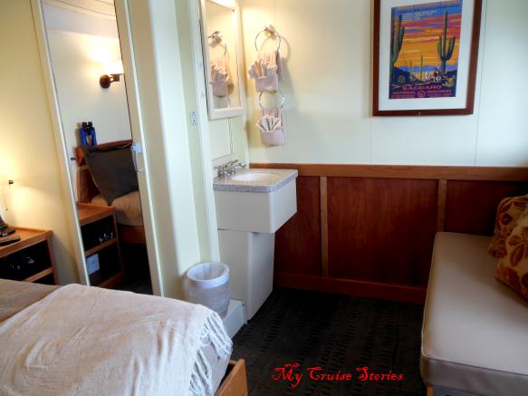 Pathfinder cabin has outside entry door. This one had a window seat and drawers under the bed.