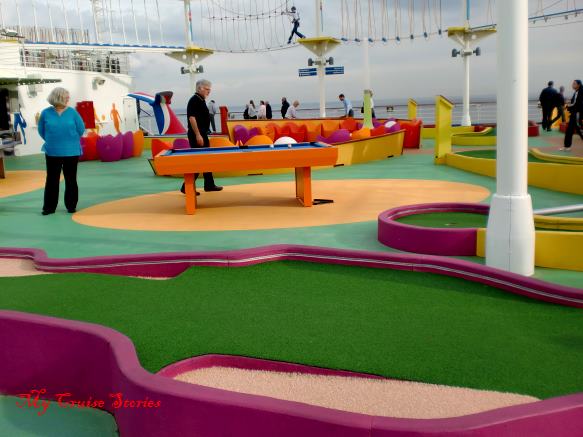 Carnival Breeze has a ropes course, outdoor pool tables, and mini golf