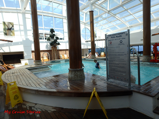 Infinity has deck chairs in all sorts of nooks and crannies around the upper decks so if the ones in the more popular area by the pool fill people have other options. These are also nice for anyone wishing to sit in a quieter spot. The large thalassotherapy pool sits in an adults only solarium between the outside pool area and the spa and is available to any adult without having to pay anything extra to use it. The area has a couple hot tubs, lots of deck chairs, and floor to ceiling windows with views of the sea. The indoor pool area was one of our favorite hangouts on the ship.
