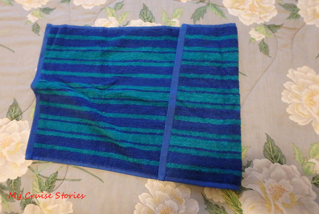 Lay towel out flat and fold one end down about 1/3 the length of the towel