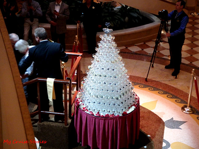 passengers got to take turns to pour champagne over the glasses so it could cascade from one to another