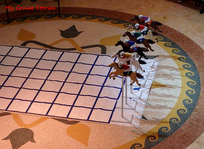 people place bets on these wooden horses and movement by rolling dice determines the winner