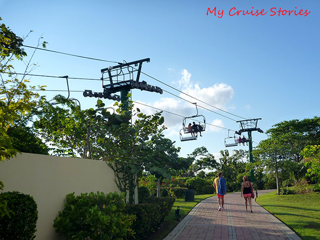 It’s a nice walk down the path with flowers and trees, a bridge and with a little side trip a view swing under a palapa