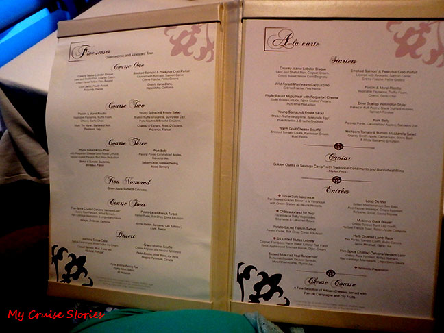 dining room food is included in the cruise fare, but upscale restaurants like SS United States on the Infinity cost extra