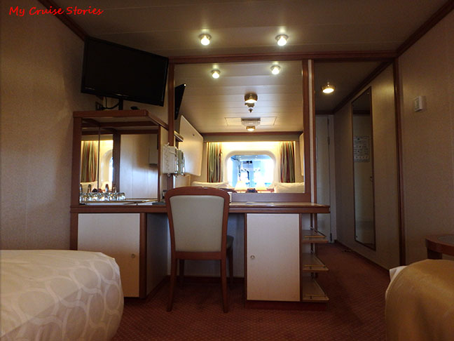 from the window end of the room you see the desk and TV