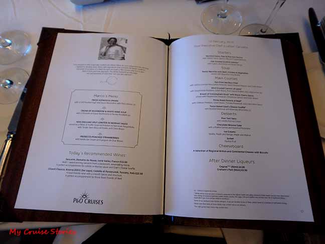 on formal nights the P&O Arcadia had a fancier menu with special food