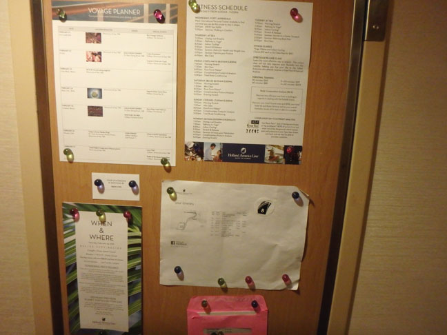 keeping a cruise ship cabin organized with magnets for the paperwork