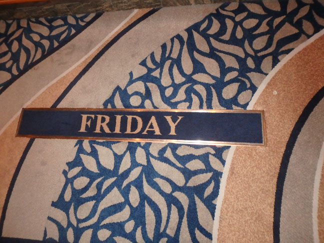 on a long cruise it’s easy to forget what day of the week it is – unless the elevator tells you