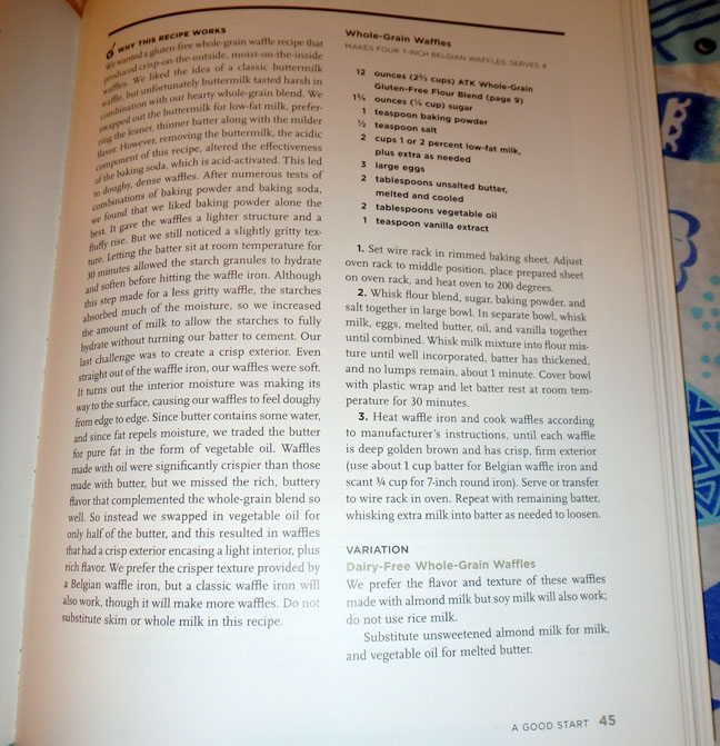 waffle recipe from America’s Test Kitchen gluten free cookbook