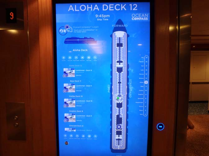 interactive screen in the elevator bay can give directions, find shipmates, and play games