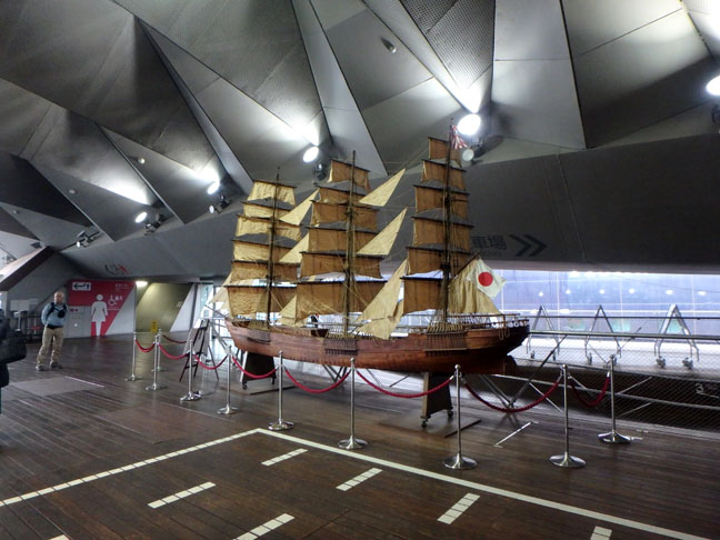 inside the cruise terminal at Osanbashi Pier in Yokohama, Japan