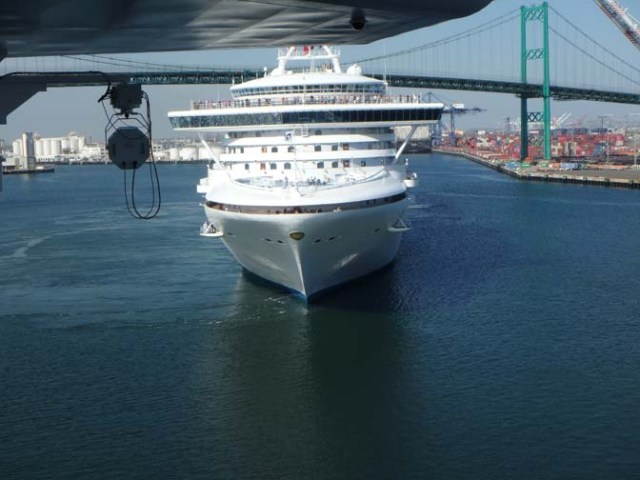 Both of these ports are south of LAX, with San Pedro about 20 miles from the airport and Long Beach about 30. Our cruise on the Royal Princess left from the World Cruise Center in San Pedro. Given LA’s notorious reputation for long lines of unmoving traffic on overcrowded freeways, we booked flights that came in well ahead of the time it should actually take to get from the airport to the cruise dock before boarding time. Better early than late and we wanted to make it to the ship on time regardless of whether we had any airplane delays or faced severe traffic.