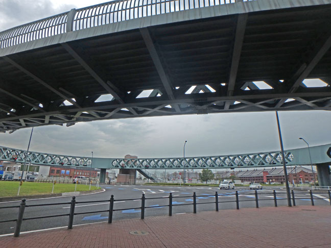 circular walkway for pedestrians to cross a busy street in Yokohama, Japan