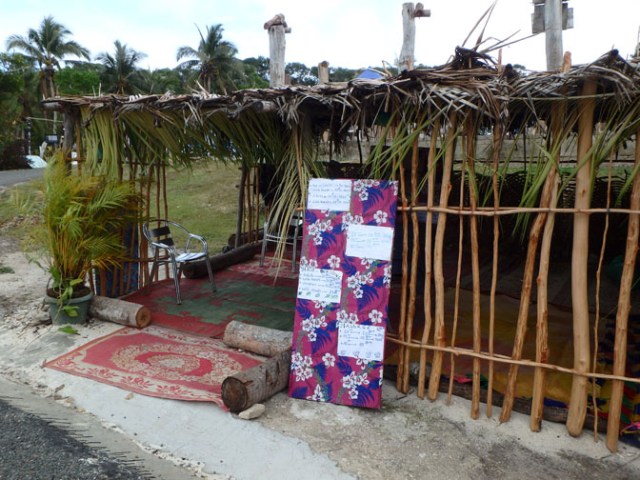 On the way into the bay there’s a sign that says not to put on sunscreen before going into the water. This is to protect the coral. Oils and chemicals in ordinary sunscreens suffocate and bleach corals leading to their demise and this is a protected area for the coral. Where the road bends to the right when you’ve nearly reached the bay there’s a building off to the left. It’s a free bathroom with toilet paper. This may not sound too impressive, but for Lifou at the time of our visit it was a great find.