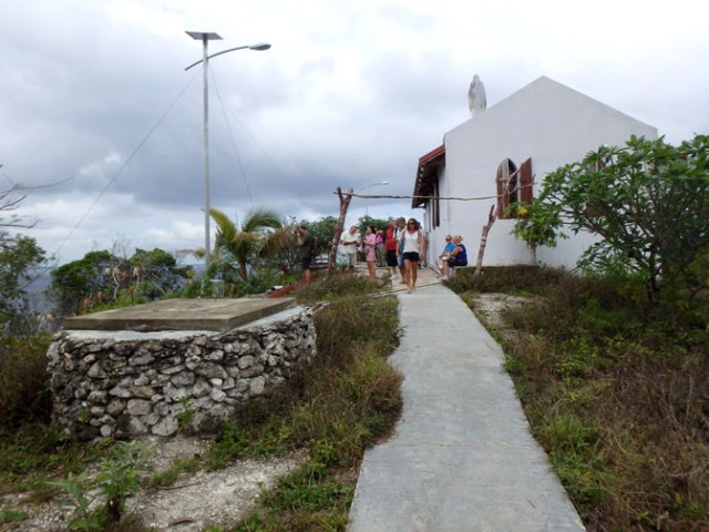 The pathway up to the church varies from a cement type ramp to uneven coral stairs. Some portions of it could be difficult for people who are not steady on their feet.