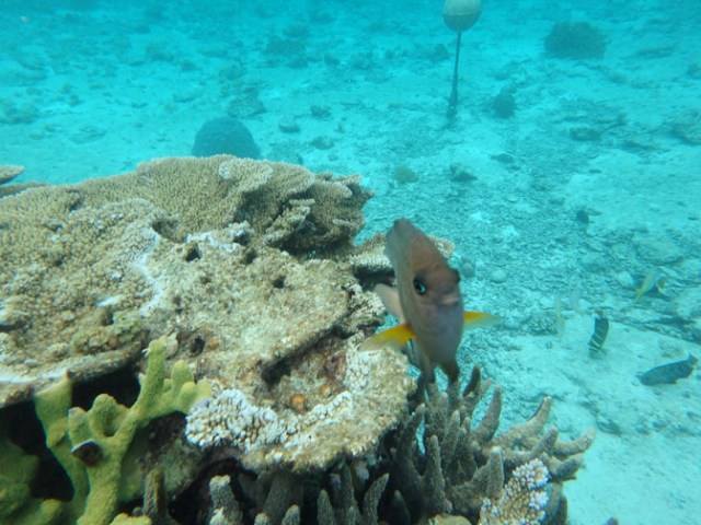 There are numbered bouys about the bay. We found the most colorful coral near number 4 on our visit. Number 2 had a patch with sea anemones and neon bright clown fish. Out near 6 and 7 the deeper water made for taller reefs and number 8 had some big brown and white corals shaped like giant flowers that I have not seen anywhere else.